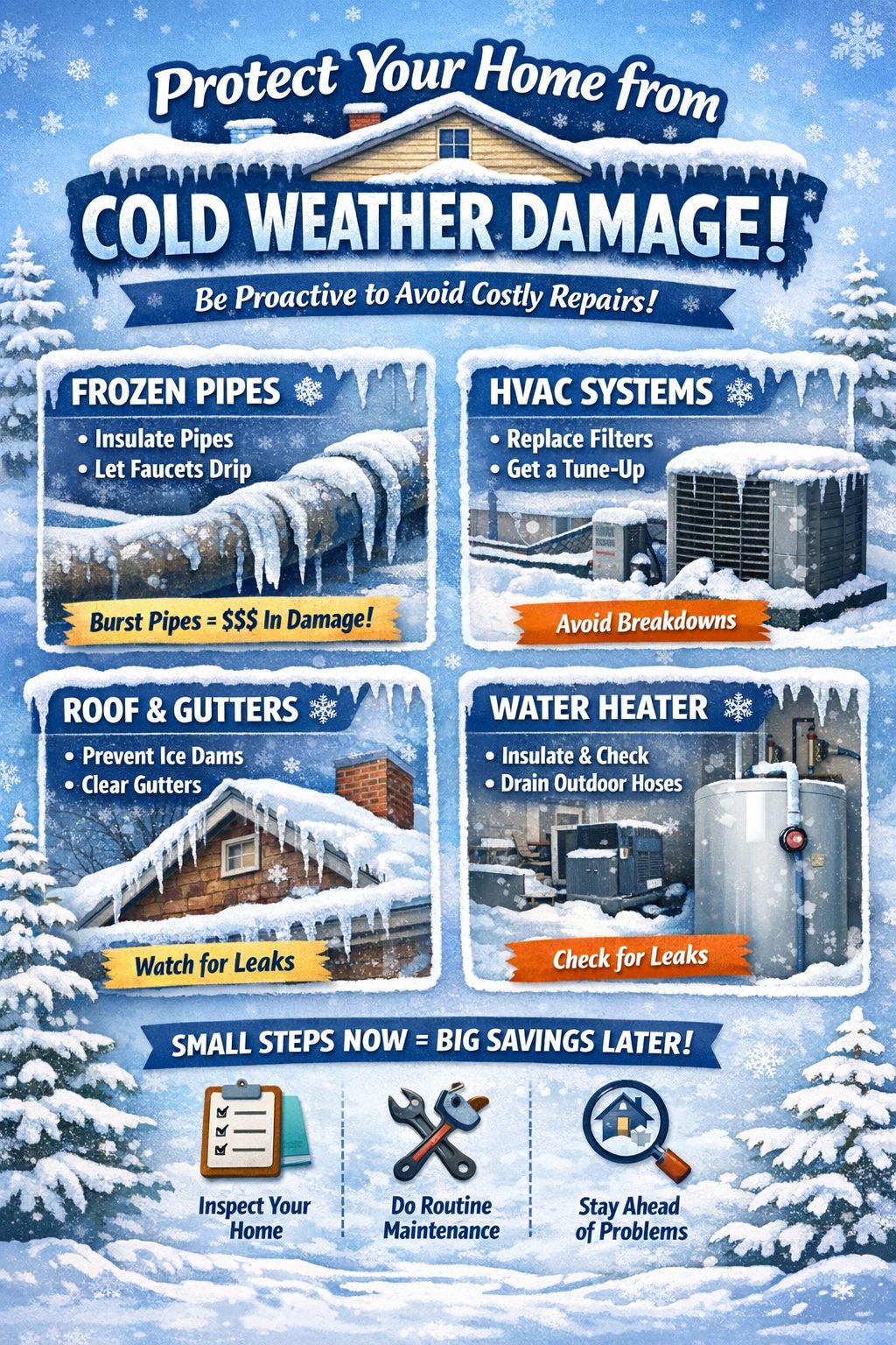 When colder weather rolls in, it doesn’t just mean cozy sweaters and hot coffee—it can also mean serious trouble for your home if you’re not prepared. Freezing temperatures can quietly cause damage to pipes, HVAC systems, roofs, and more, often leading to expensive repairs that could have been prevented with a little proactive care.