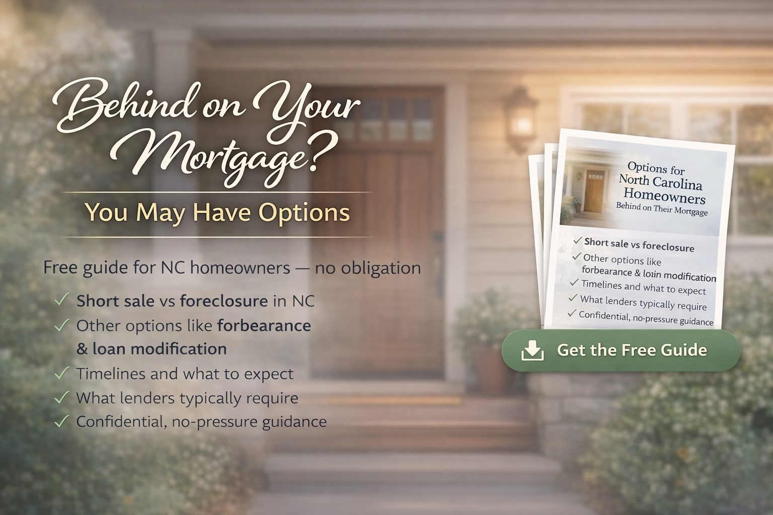Every situation is different, but depending on your circumstances, homeowner options in North Carolina may include: